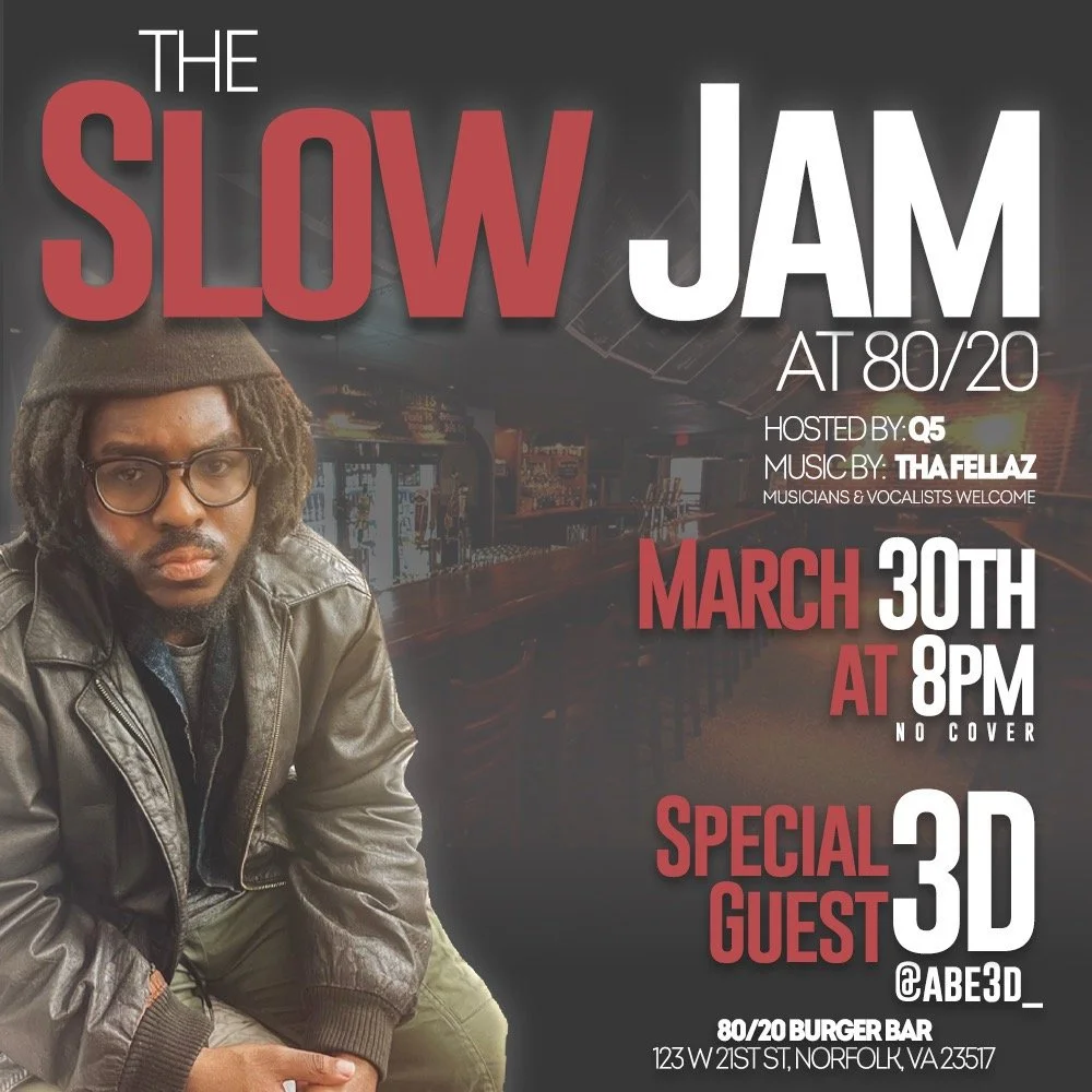 The Slow Jam at 80/20 Thursday, March 30, 2023 8:00 PM 11:55 PM 80/20 Burger Bar 123 West 21st Street Norfolk, VA, 23517 United States (map) Google Calendar ICS